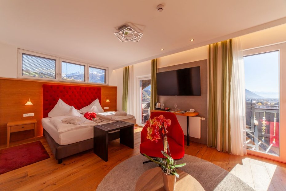 Das Ruster Resort liegt ruhig und dennoch zentral im Gartendorf Algund auf 360 m Meereshöhe, inmitten von Obst- und Weingärten und mit wunderbarer Aussicht auf Meran und das weite Etschtal.